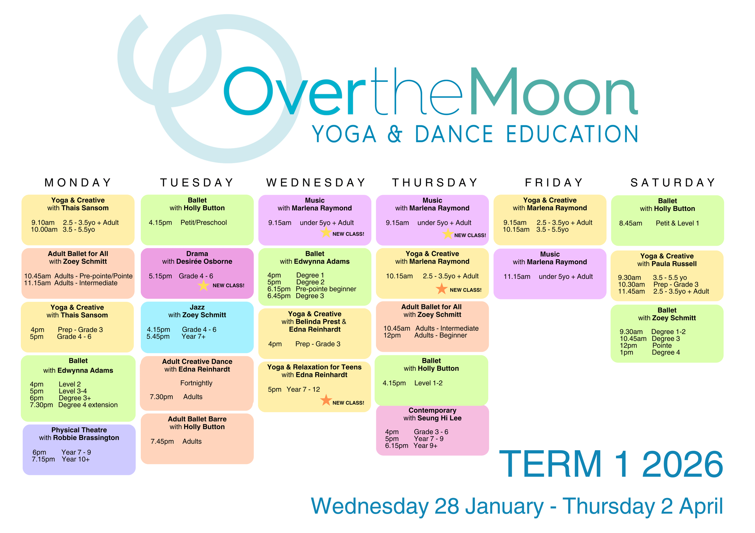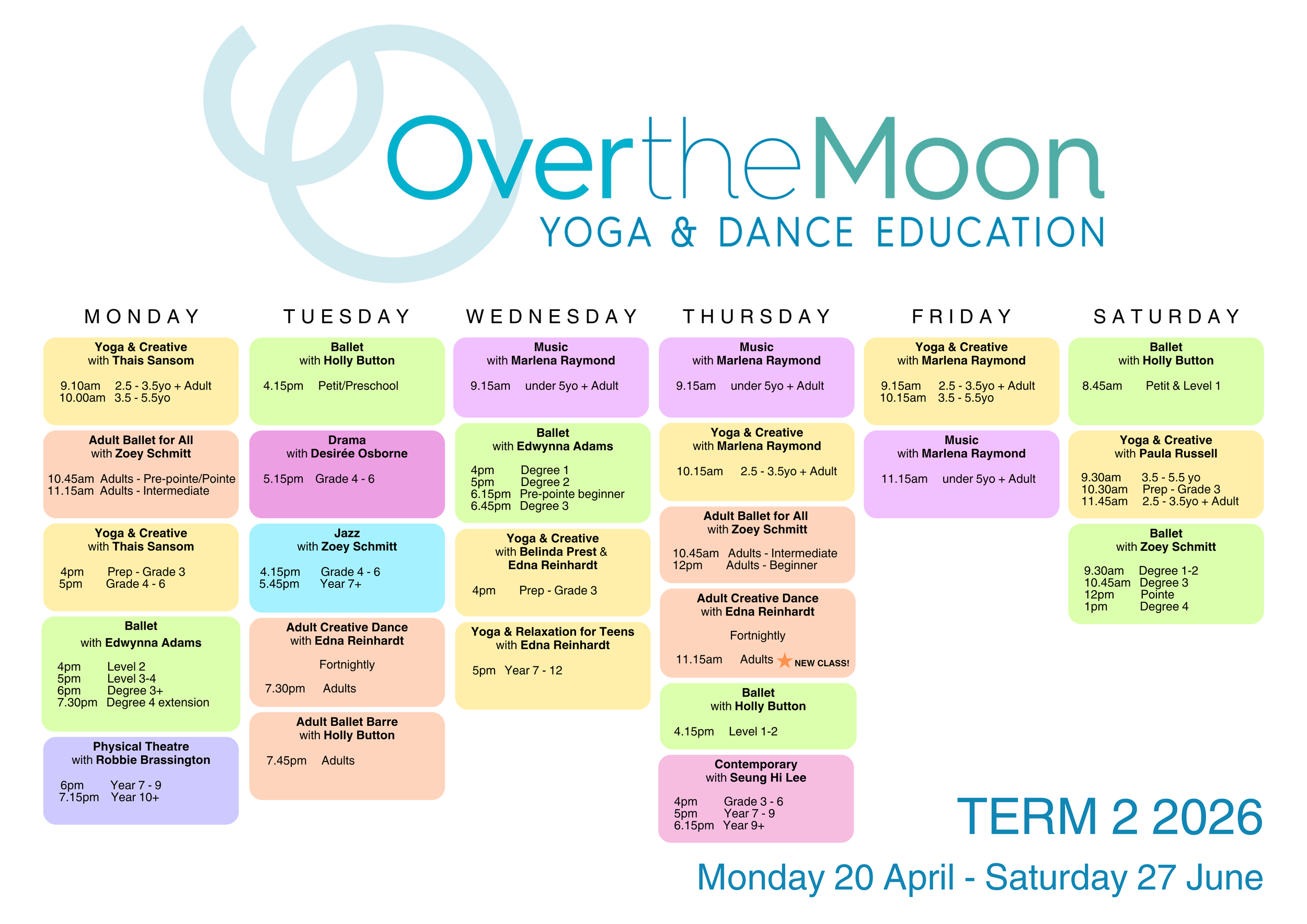 In December 2023, Michelle Young and Marlena Raymond stepped into co-director roles at Over the Moon Studio. Michelle and Marlena trained at Mangala Studios in Carlton, Melbourne, which was founded by Edna Reinhardt’s teacher, Mrs Dorotea Mangiamele, in 1970.